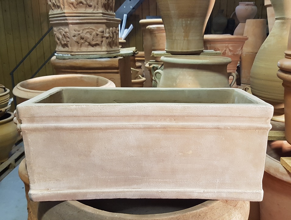 Klassieke handgemaakte terracotta Cassetta: afmeting: 57x29x23cm (lxbxh).