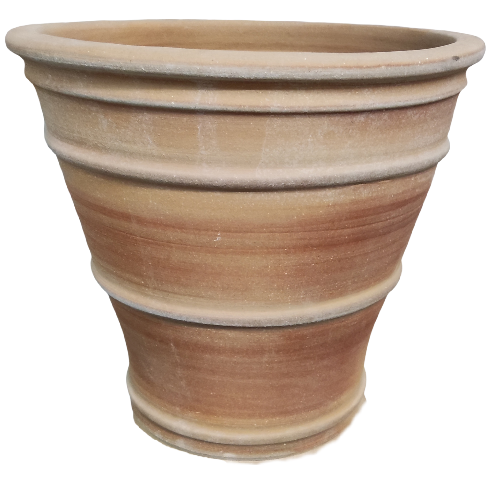 Stoere taps lopende terracotta pot, handgemaakt (gedraaid) op Kreta (Thrapsano).