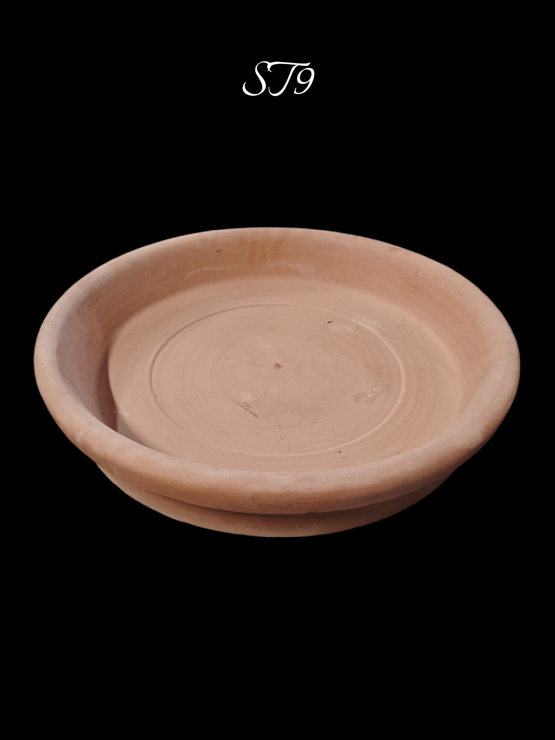 Grote handgemaakte Toscaanse terracotta waterschotel, pot staat a.h.w. op een verhoging in de schotel. Binnenmaat: 50cm.