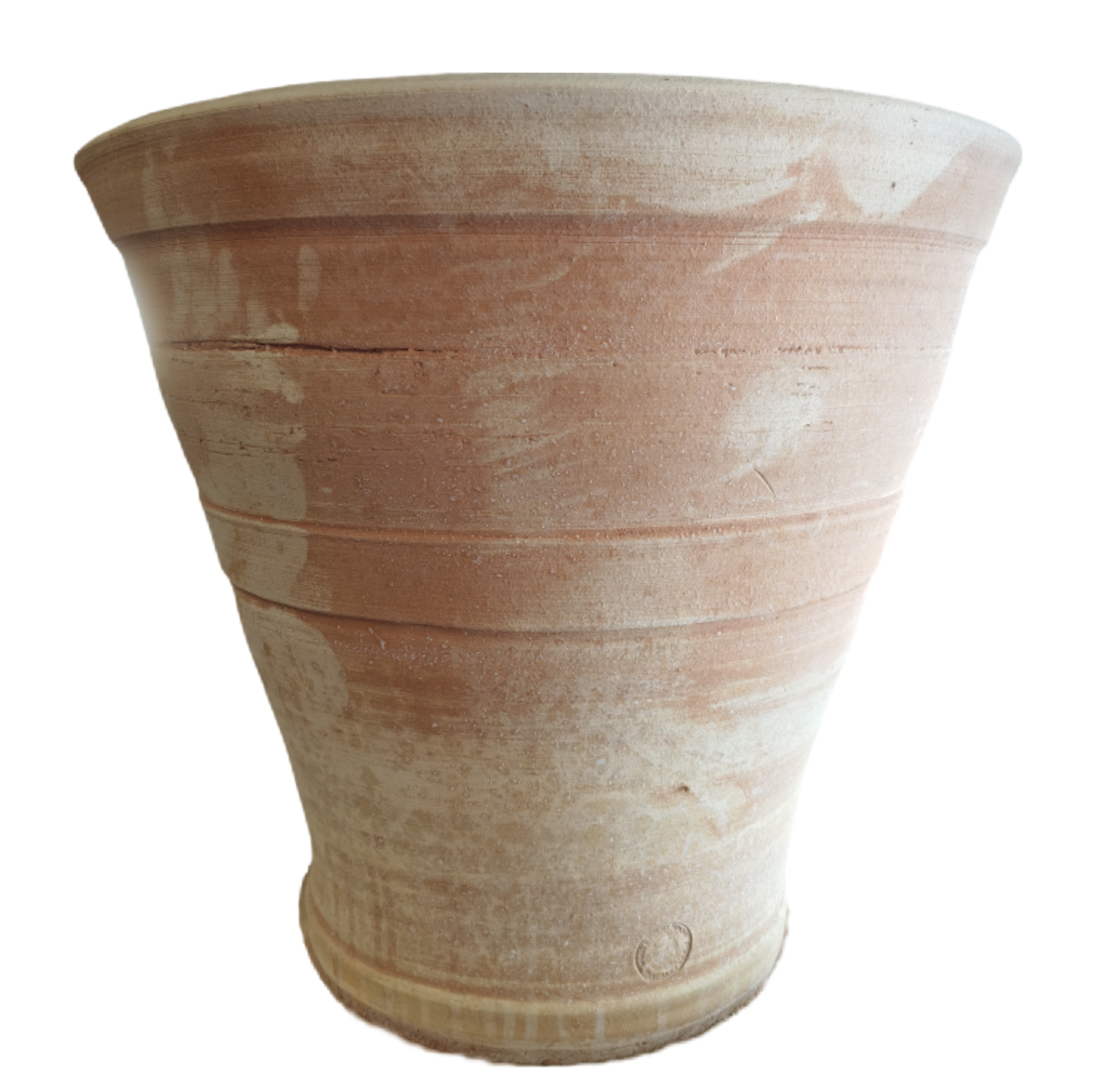 Flinke taps lopende terracotta pot, handgemaakt (gedraaid) op Kreta (Thrapsano).